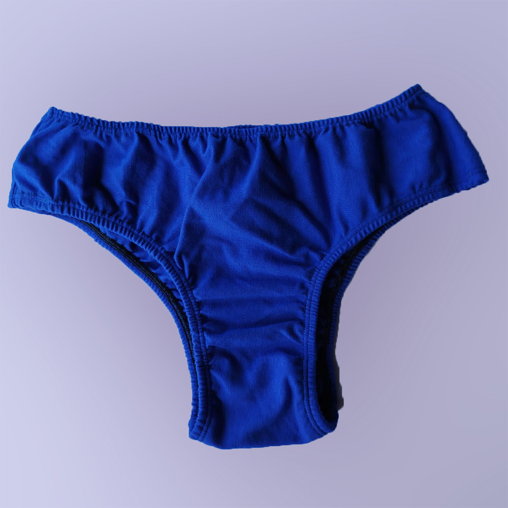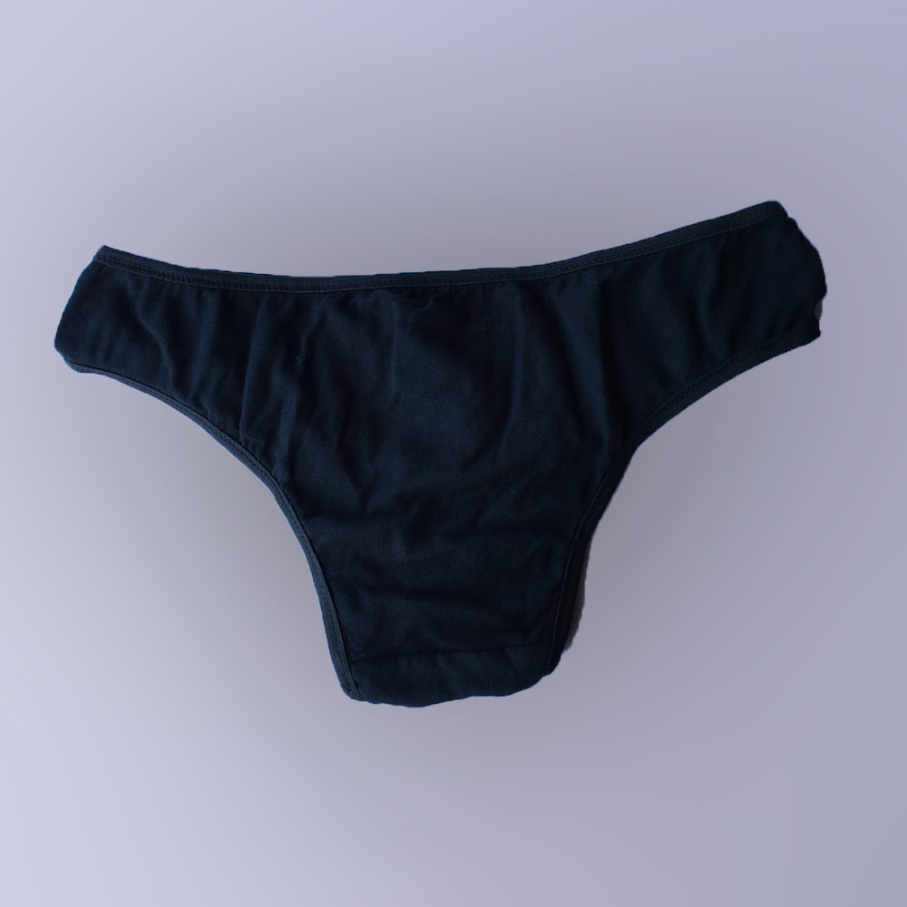 Bombacha tipo vedetina de algodon liso, con refuerzo en la entrepierna. El elastico esta embutido para evitar roces con la piel.
